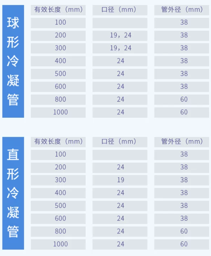 球形冷凝管,内管由相连的球形组成(若干个玻璃球连接起来,球形部分为磨具机制,起到均与有效冷却的作用),用于有机制备的回流,作蒸馏、分馏或回流的装置上与蒸馏烧瓶、弯形接管配套使用时起冷凝蒸气和凝聚液滴的作用。