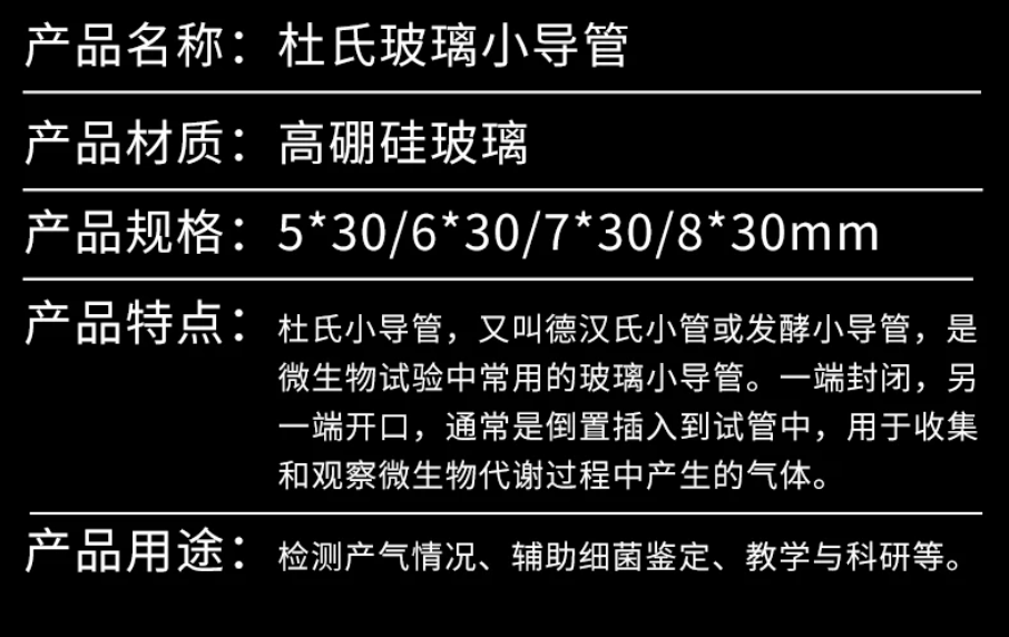 发酵管杜氏小管玻璃小导管5*30mm水质总大肠菌群培养用导管微生物试验管