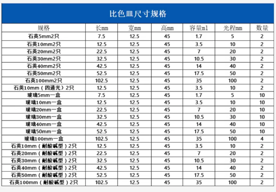 玻璃石英比色皿耐酸碱比色皿721/722分光光度计比色皿胶溶烧结比色皿