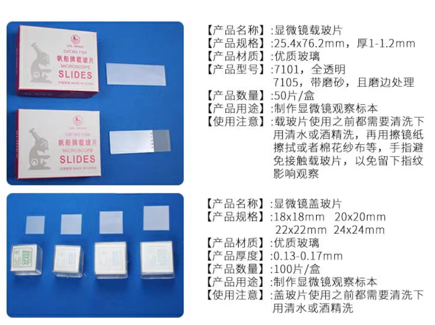 帆船牌载玻片 7101 7105磨砂载玻片 显微镜使用玻璃载片50片/盒